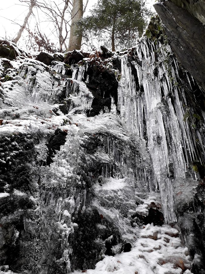 długie siarczyste mrozy aż do marca sprawiły, że sople zamieniły się w lodowy wodospad.
