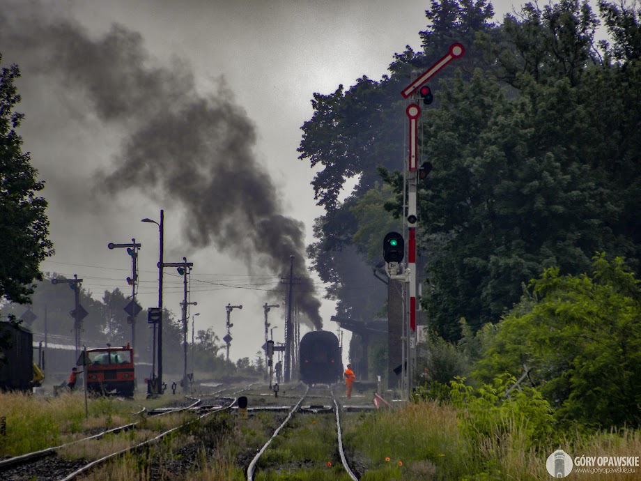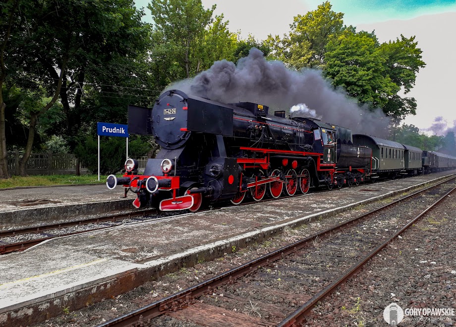 Prezentowane zdjęcia pochodzą z 8 czerwca 2018 r. Pociąg jadący od strony Nysy łapałem najpierw przed Prudnikiem, później na samej stacji Prudnik, gdzie miał chwilowy postój. Dalej goniłem go do Racławic Śląskich, na tamtejszej stacji maszyna miała około godzinny postój na uzupełnienie wody. W sobotę i niedzielę 9-10 czerwca 2018 w Racławicach Śl podczas Pikniku Kolejowego można było "zażyć" przejażdżki parowozem. Kilka specjalnych składów jeździło do Prudnika i z powrotem.