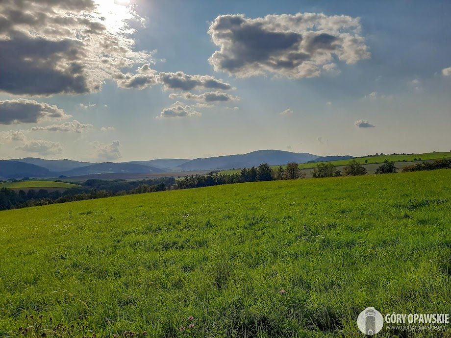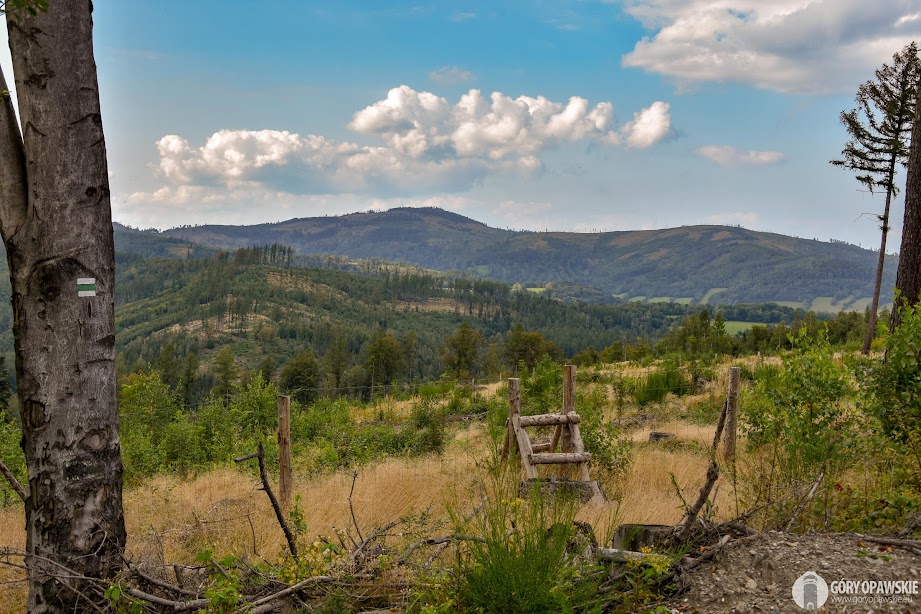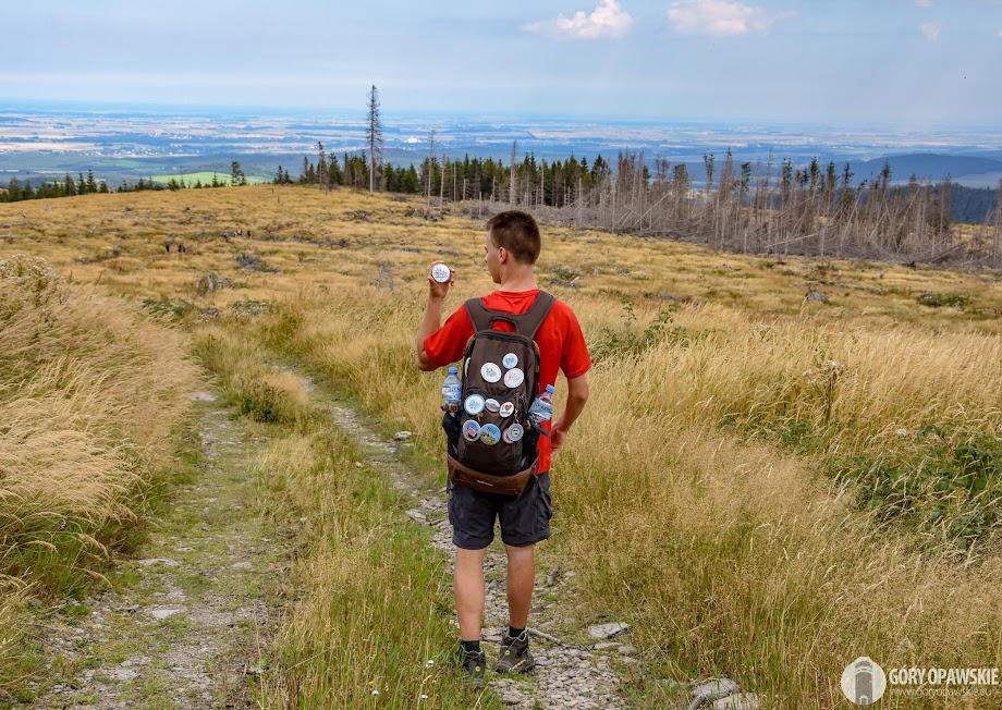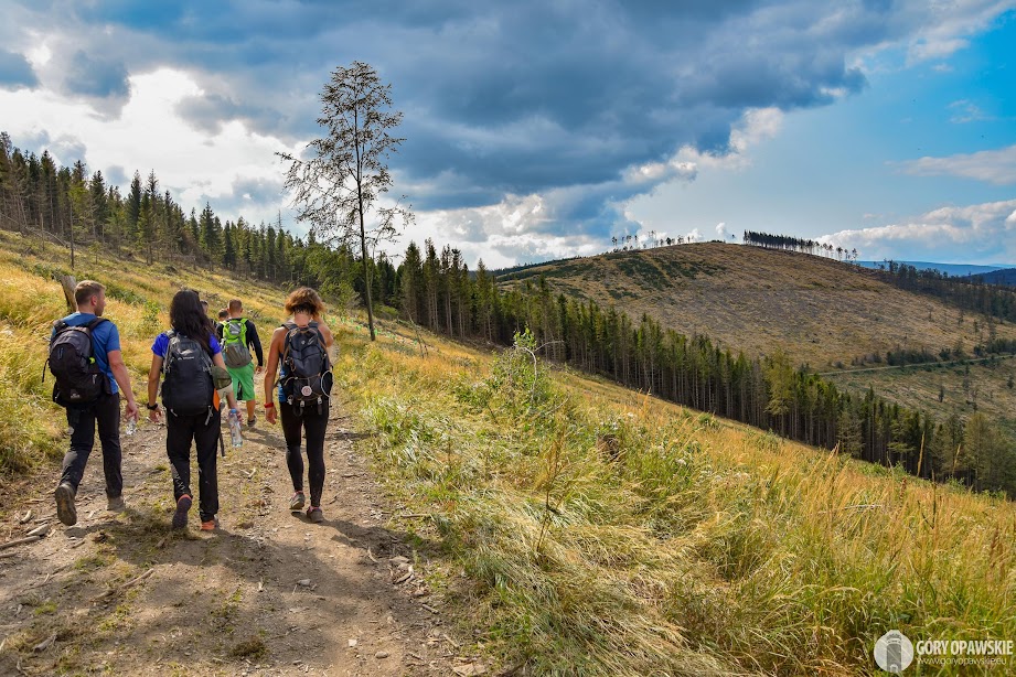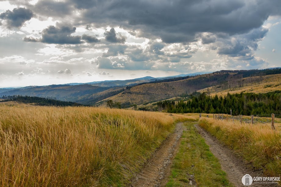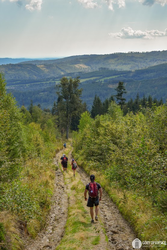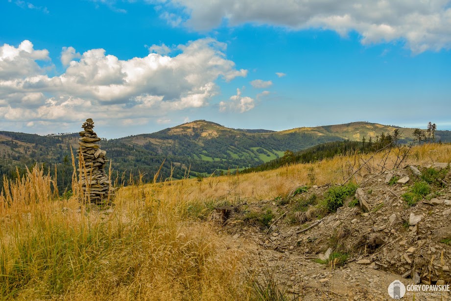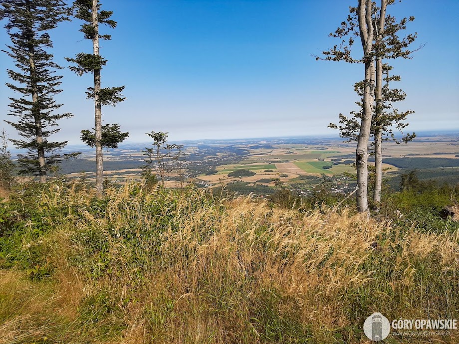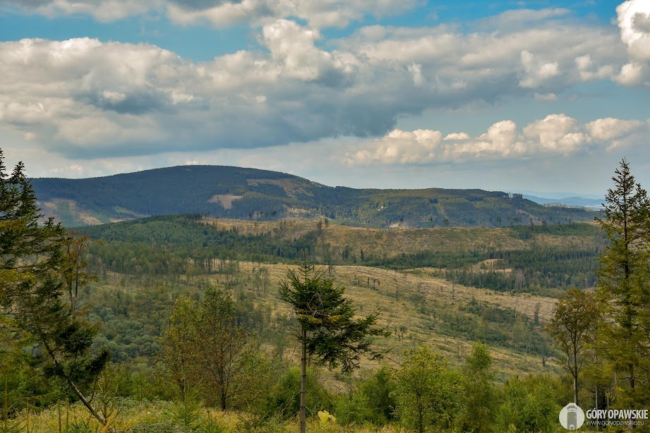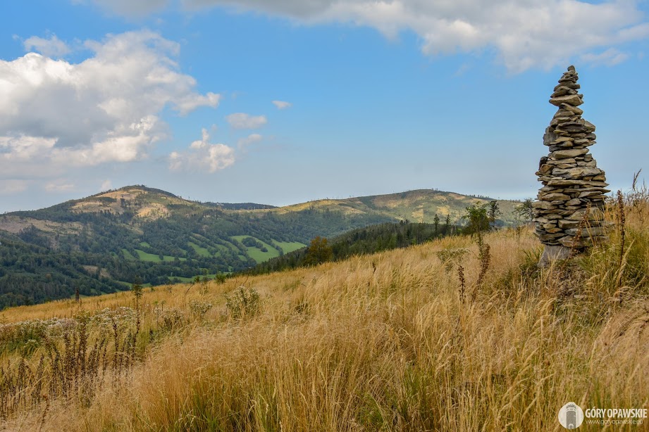 Wychodzimy na „opawskie połoniny”, tak można nazwać krajobraz jaki dominuje w tym masywie od kilku lat. Jeszcze do niedawna cały porośnięty był borem świerkowym, klęska kornika doprowadziła do ogromnych wycinek. Dziś lasu już nie ma, ogromne połacie stoków porasta pożółkła trawa, wokół roztacza się piękny widok, krajobraz ma coś z bieszczadzkich połonin.