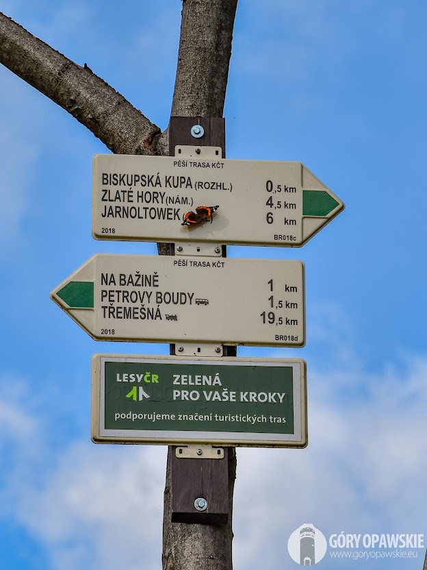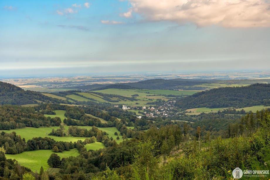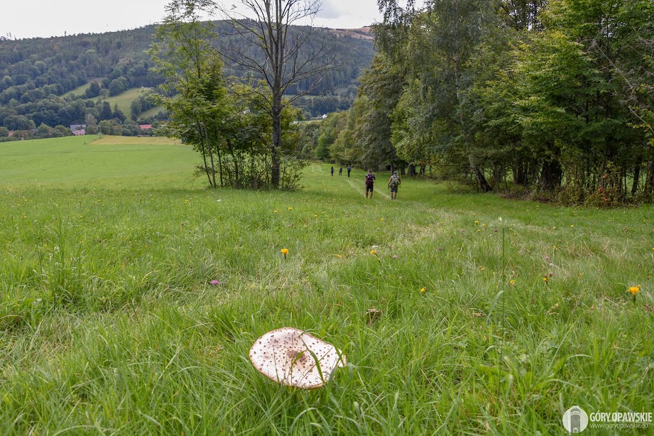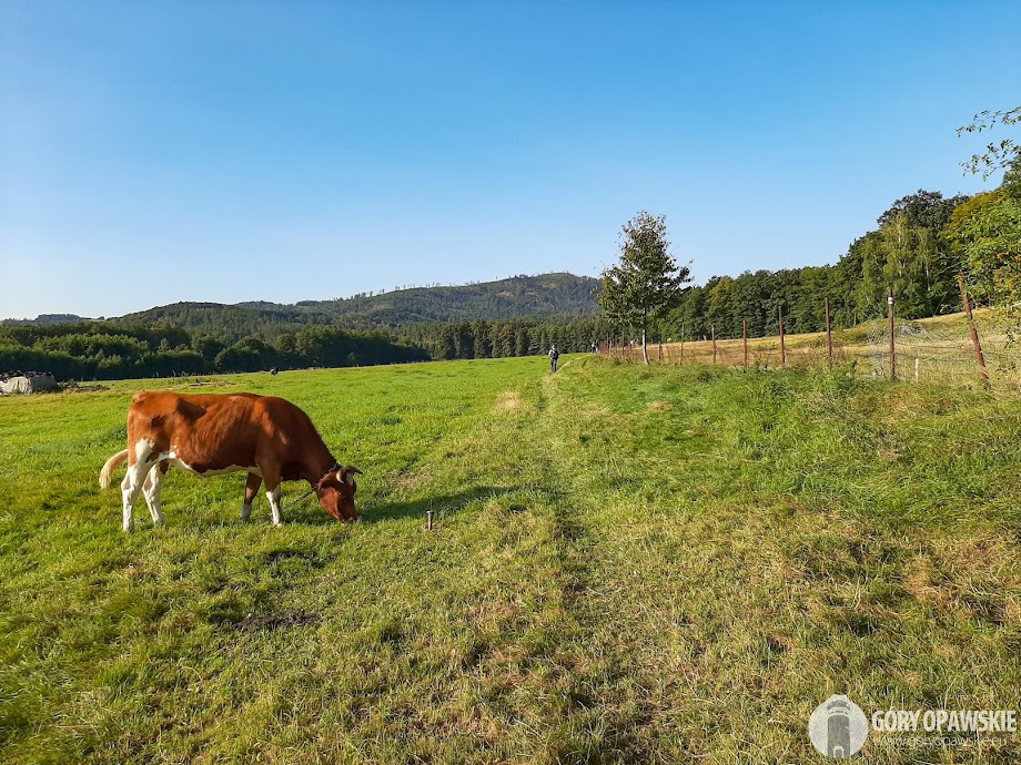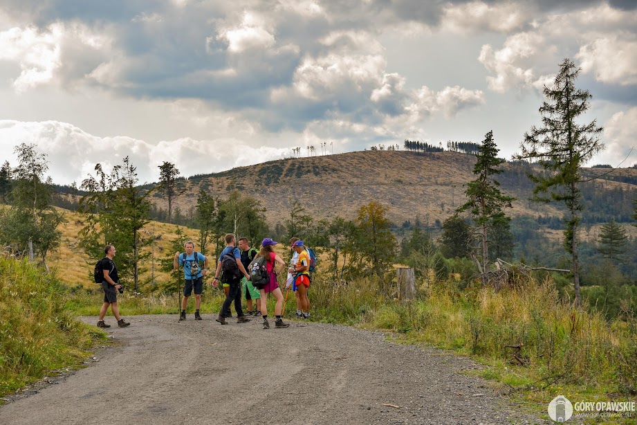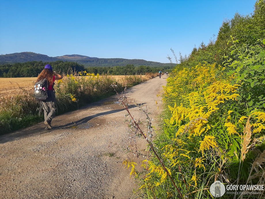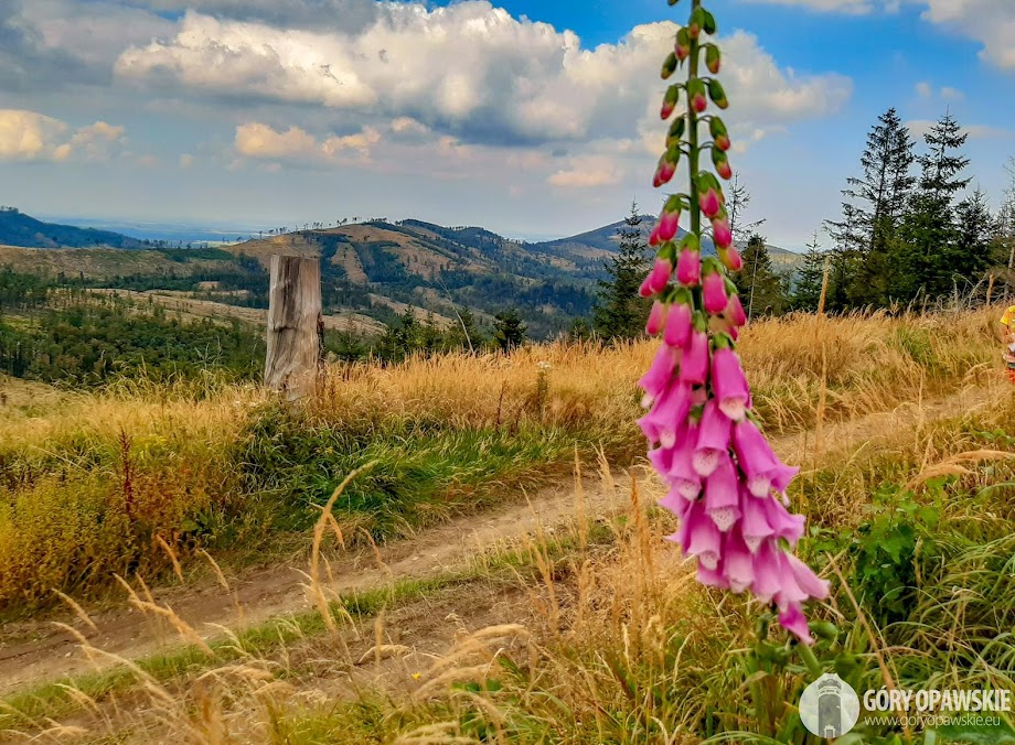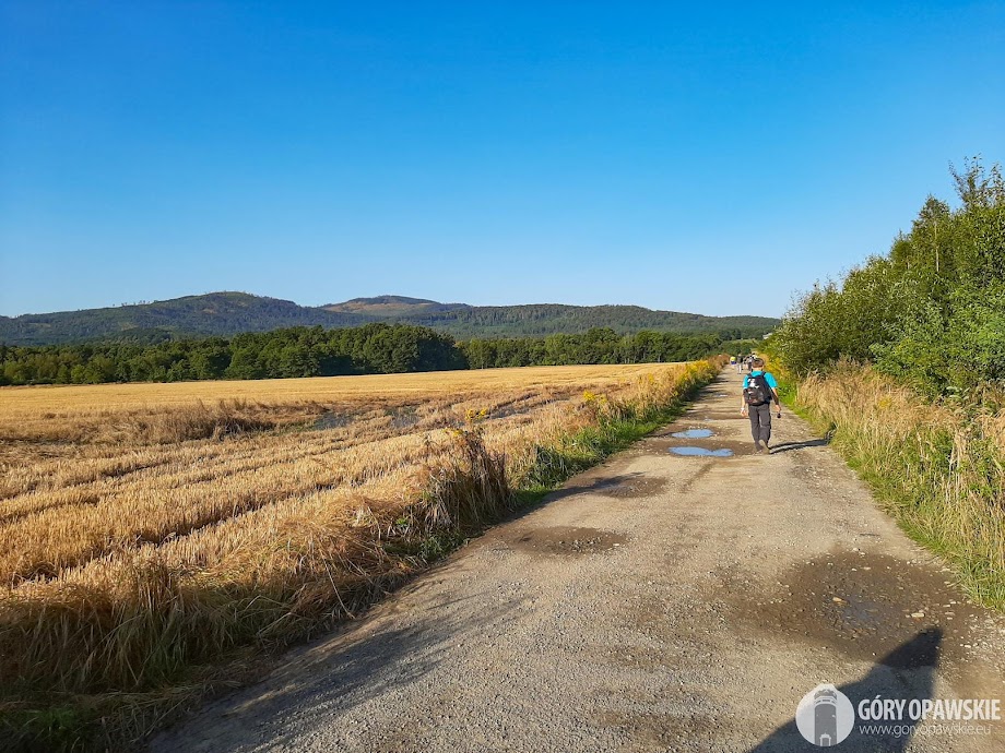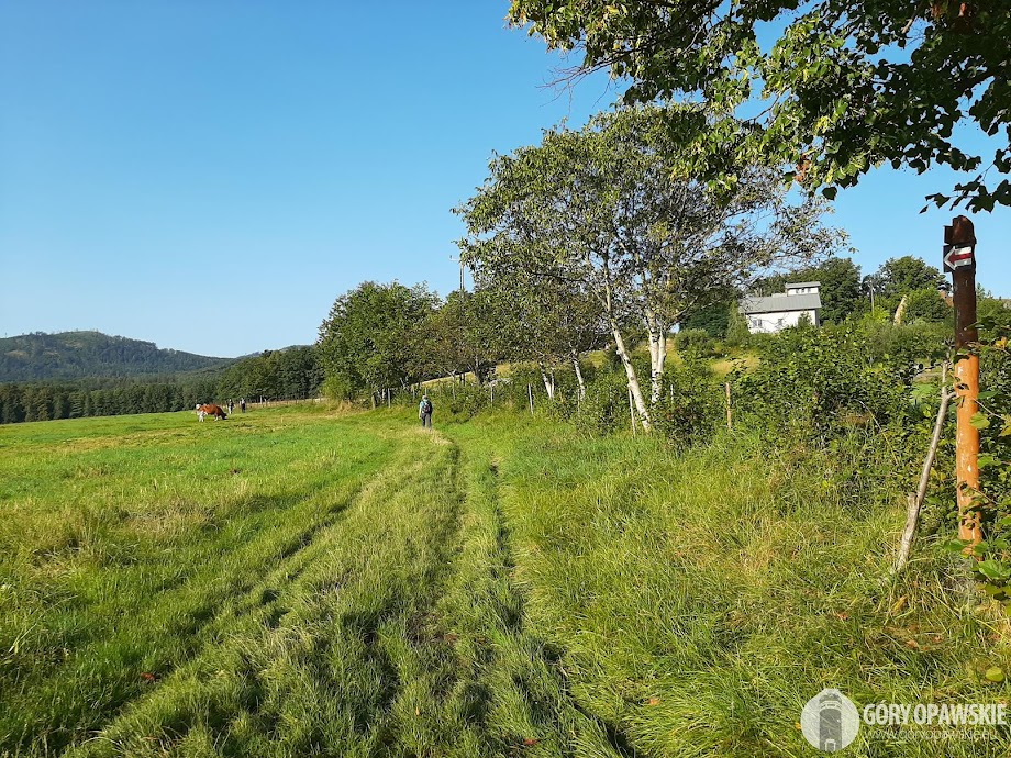 Wychodzimy na „opawskie połoniny”, tak można nazwać krajobraz jaki dominuje w tym masywie od kilku lat. Jeszcze do niedawna cały porośnięty był borem świerkowym, klęska kornika doprowadziła do ogromnych wycinek. Dziś lasu już nie ma, ogromne połacie stoków porasta pożółkła trawa, wokół roztacza się piękny widok, krajobraz ma coś z bieszczadzkich połonin.