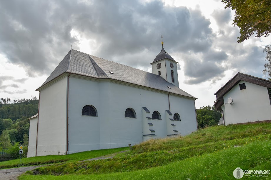 Odpoczywamy tutaj chwilę, następnie schodzimy w dolinę Svinnego Potoku. Teraz wzdłuż strumienia niebieskim szlakiem podążamy do Jindřichova. W tej miejscowości wchodzimy na asfaltową ścieżkę rowerową, którą wspinamy się do granicy. Znów jesteśmy w Lesie Prudnickim, tutaj wybieramy żółty szlak i wzdłuż granicy, przez podmokłą Dolinę Marii wychodzimy na pola koło Trzebiny. Ostatni odcinek trasy do wędrówka przez pola, Rozdroże pod Trzebiną i Sanktuarium św. Józefa na polanę pod Kozią Górą. Tutaj w tym roku jest meta Prudnickiego Maratonu Pieszego.