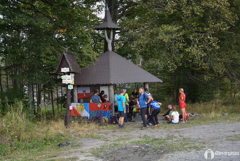 Z Prudnika wychodzimy gdy jest już jasno, a wschód słońca zastaje nas gdy wchodzimy do Lasu Prudnickiego. Niebieskim szlakiem zdobywamy pierwszy szczyt na dzisiejszej trasie – Kapliczną Górę z ruinami klasztoru. Szlak wiedzie nas dalej przez Okopową, Kobylicę do Kamienia Granicznego Prudnika z 1730 r. Tutaj organizatorzy przygotowali pierwszy niespodziewany punkt kontrolny. Długopisem wiszącym na drzewie należało zrobić krzyżyk na karcie kontrolnej.