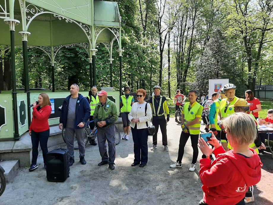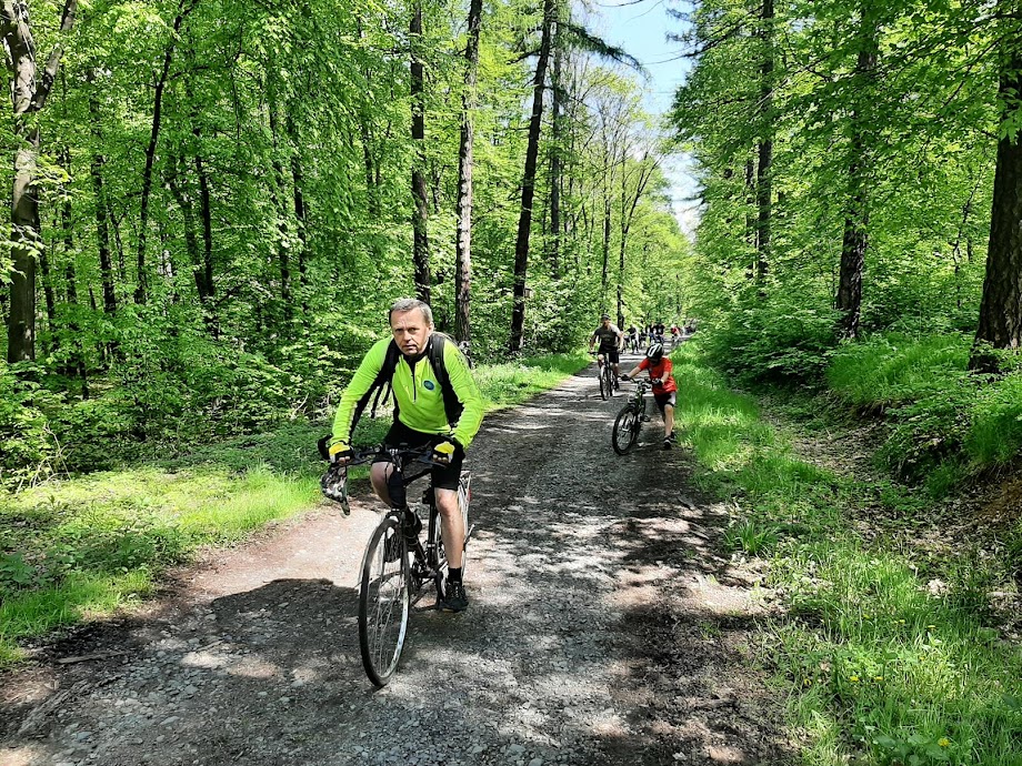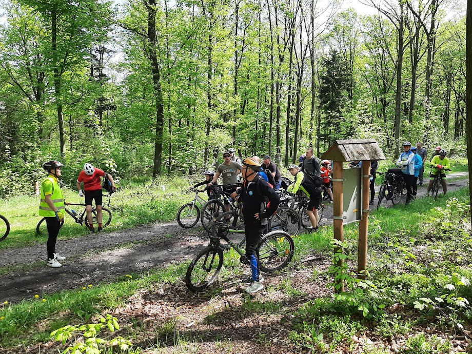 Uczestnicy podzieleni na kilka grup pokonywali trasę z przodownikami, którzy opowiadali o mijanych po drodze ciekawych miejscach oraz zadawali krótkie pytania z wiedzy o regionie. Na leśnym parkingu w Dębowcu w połowie trasy zorganizowano punkt kontrolny z wodą. Trasa w większości biegła przez tereny leśne, było kilka bardziej wymagających podjazdów. Z niektórych miejsc otwierały się dalsze widoki na okolicę.