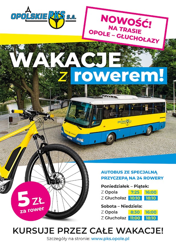 1 lipca rusza zupełnie nowe połączenie turystyczne PKS Opole skierowane do turystów z rowerami pragnącymi zwiedzać Góry Opawskie. Codziennie do końca wakacji na trasie Opole - Prudnik - Pokrzywna/Jarnołtówek - Głuchołazy i z powrotem będzie kursował autobus z specjalną przyczepą mogącą pomieścić 24 rowery. Koszt przewozu roweru to 5 zł. Wyjeżdżając z Opola będzie można od razu zarezerwować sobie miejsce na powrót tego samego dnia. Grupy będą mogły także wcześniej zarezerwować miejsce za pomocą nr telefonu: 77 400 94 21. Firma wychodzi na przeciw oczekiwaniom turystów, którzy będą chcieli rano ruszyć na szlaki rowerowe i zwiedzać Góry Opawskie zarówno po polskiej jak i czeskiej stronie, a wieczorem wrócić z powrotem do Opola.