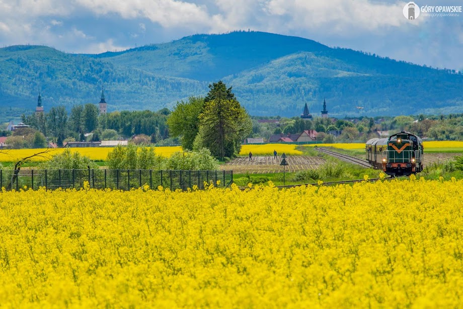 Dlatego sobotni przejazd pociągu specjalnego był nie lada gratką dla miłośników kolei, ale także mieszkańców, którzy mogli w końcu zobaczyć pociąg na tej trasie. Przejazd budził duże zainteresowanie. Linia ma też malowniczy przebieg po polach, mimo że w większości znajduje się na równinnym terenie, pociąg czasem musi pokonać wzniesienie lub łuki. W tle na południu znajduje się pasmo górskie Sudetów z najbliższymi Górami Opawskimi oraz Jesenikami. W tym roku dodatkowo w momencie przejazdu pociągu pola były pokryte żółtym rzepakiem co w połączeniu z dynamiczną pogodą, dobrą przejrzystością dawała piękne efekty widokowe! 😊