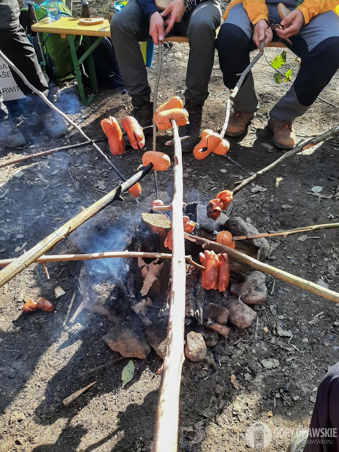 Potem przez źródła Opawicy, stokiem Přičnego Vrchu podążamy do V punktu kontrolnego w Heřmanovicach. Dla uczestników przygotowano tutaj ognisko, kiełbasę i śliwowicę 😆. Robimy więc przerwę na posilenie się tym co przygotowali organizatorzy.