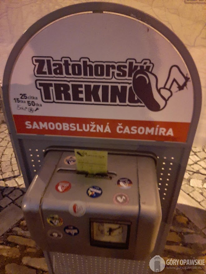 Początkowy odcinek pokonujemy jeszcze w ciemnościach ulicami Zlatych Hor, czerwonym szlakiem do stacji kolejowej. Tutaj nowość bo kilkaset od startu na dworcu znajduje się I punkt kontrolny – samoobsługowa pieczątka na peronie. Dworzec w Zlatych Horach jest stacją końcową krótkiej linii kolejowej (9 km) z Mikulovic będącej odnogą tranzytowego szlaku Jesenik – Głuchołazy. Przy budynku stacji coś się dzieje, trochę odświeżono elewację, odnowiono też żuraw wodny, obok stoją też stare wagony. Może jakieś retro z parowozem będzie tu jeździć? Na peronie pod wiatą stoi pianino, gdy podróżnemu się nudzi w oczekiwaniu na pociąg może pograć…😄