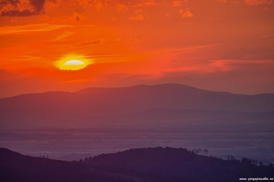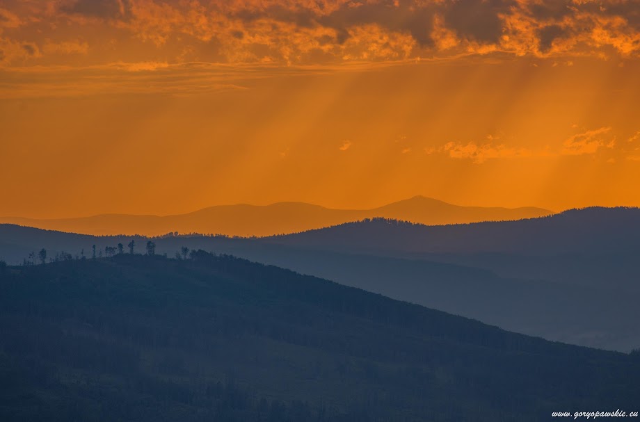 Lipcowe dni to czas kiedy słońce ponad horyzontem góruje przez wiele godzin, chowając się za nim jedynie na kilka godzin. Zatem niemal zanim niebo na zachodzie zupełnie pociemnieje od strony wschodniej zaczyna jaśnieć. Ten czas to okazja by ruszając nawet późnym popołudniem w góry przejść jeszcze trochę kilometrów i zobaczyć spektakl kończącego się dnia. Często lubię właśnie ruszać w góry popołudniu, na ruchliwych szlakach to plus, wchodząc mijam osoby schodzące, a często gdy jestem już na grzbiecie zostaje garstka osób lub zupełnie nie ma już nikogo… Wtedy są tylko widoki, natura ja i zachód słońca…