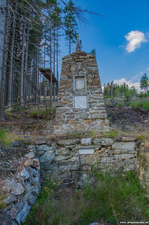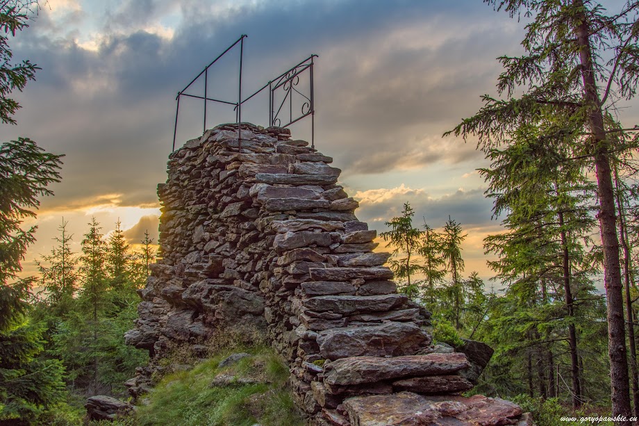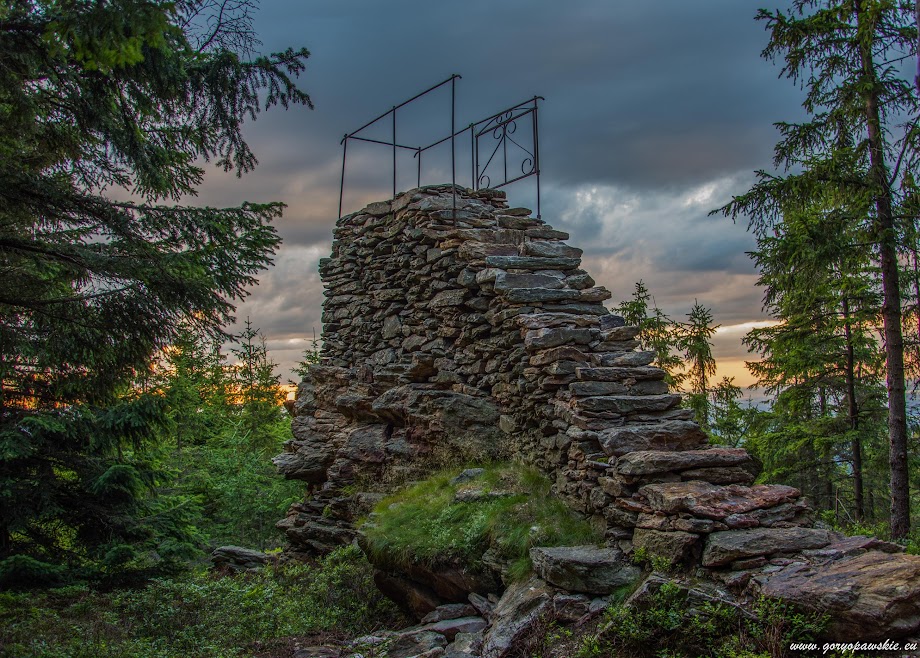 Ta platforma widokowa ma pewnie więcej niż 100 lat, jeszcze kilka lat stał na niej stary drewniany krzyż. Potem była w coraz większej rozsypce, ktoś zrzucał stamtąd kamienie obniżając ją... W tym roku jednak stowarzyszenie z Jesenika odbudowało ją i znów cieszy oko. Drzewa jednak rosną i za kilka lat widok zniknie, ale poniżej wycieli las, więc teraz będzie widok stamtąd skąd roniłem zachód słońca. :)