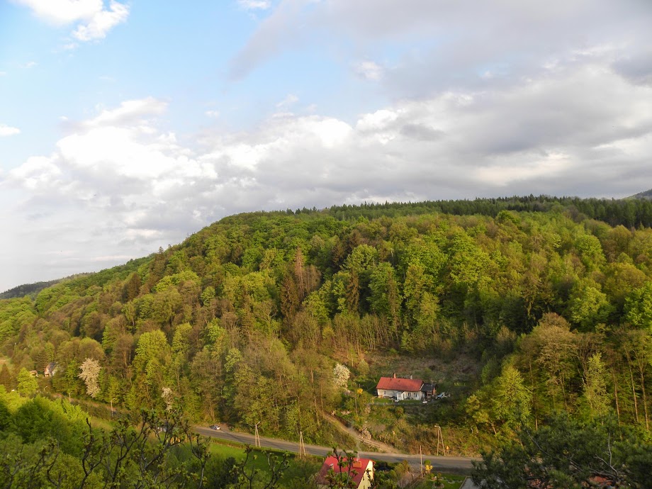 zbocze bardzo stromo opada do Złotego Potoku. U podnóża znajdują